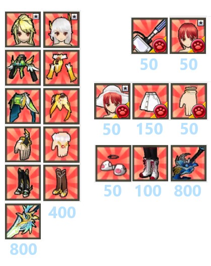 我出衣架: 髮上下+81、手鞋+42、武器飾品+111、連身+156
