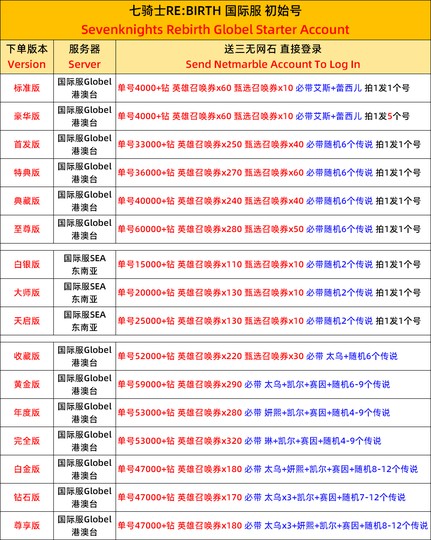 全 8591 首家 七騎士重生製版RE:BIRTH韓服國際服開局初始自抽自選初始首抽號