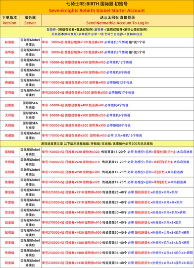 全 8591 首家 七騎士重生製版RE:BIRTH韓服國際服開局初始自抽自選初始首抽號