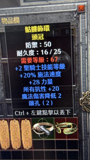 極品黃頭,2聖騎士技能,20施法,28力量,20全抗,魔法降低2,2洞