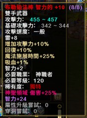 120血腥法棒+10 / 屬性8 / 8洞智力卡 / 神聖領域25