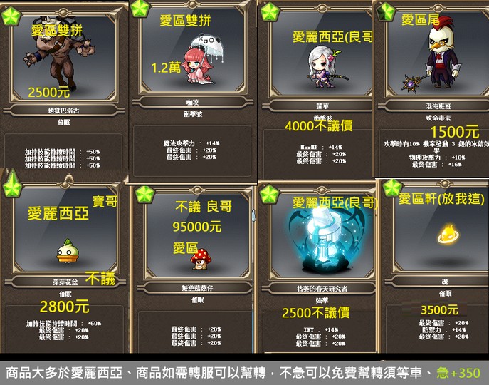 物品位於愛麗西亞,單品轉區需+500~600元、