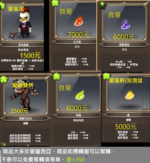 物品位於愛麗西亞,單品轉區需+500~600元、