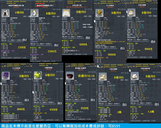 物品位於愛麗西亞,單品轉區需+500~600元、