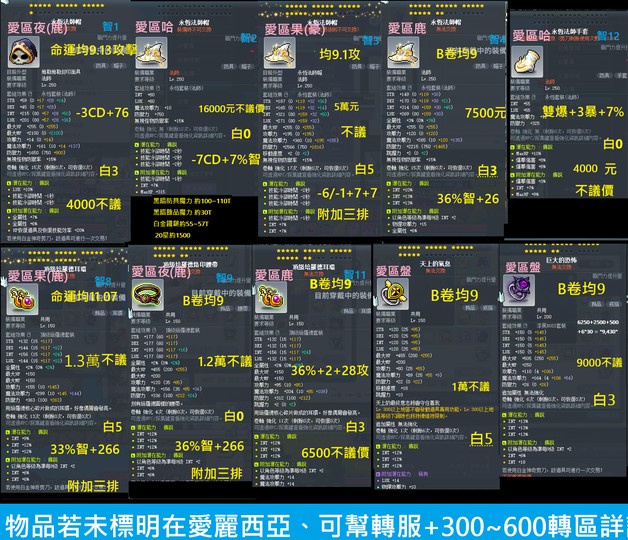 物品位於愛麗西亞,單品轉區需+500~600元、