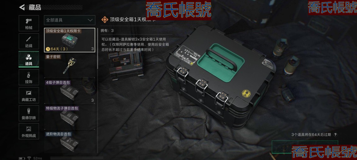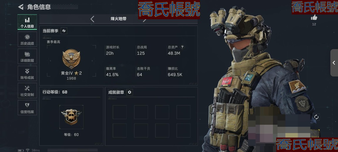 【11等】總資產:50M,哈夫幣:36W,武器皮膚:13,烽火60級:黃金,基礎安全箱;