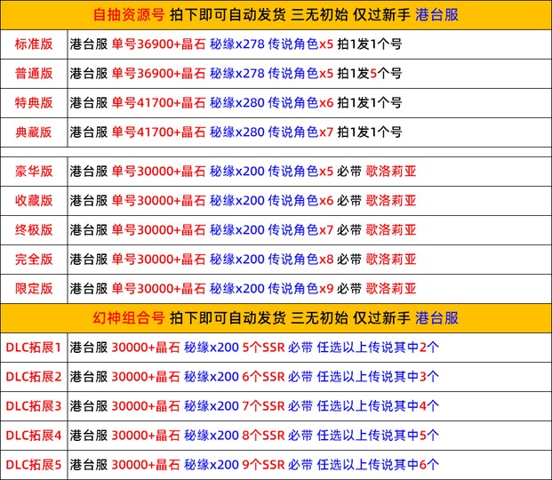 例如 陸服需要綁定到大陸的手機/信箱等個人資料,需要自行綁定,賣家無法提供,如果沒有大陸資料可以綁定 請謹慎購買