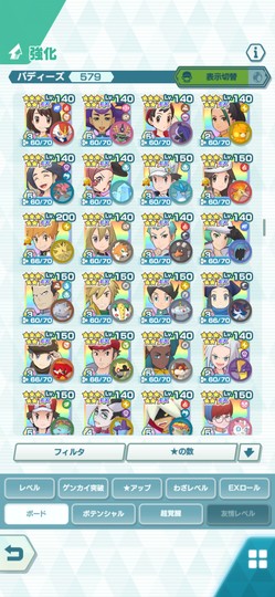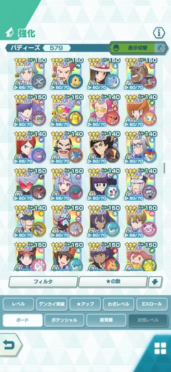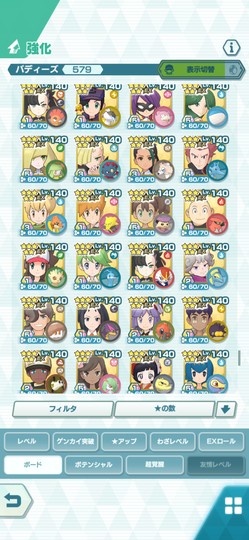 全大師拍組!!(包括兌換的大師拍組),目前全8591最高所持數(而且此所持數是不包含蛋寵!!!!)。圖鑑(579/591) 只有15角色沒拿到(實際上只有12隻沒拿到,扣掉初始御三家3隻,分別剩主角-雙奶仙(剩下5種樣子)、武藏-阿伯怪、小次郎-雙蛋瓦斯、鬥子-功夫鼬、小驅 - 伊布(忘記抽)。除了這15隻,這帳號擁有遊戲中所有登場的拍組。阿爾池、大師池、季節池、活動池、兌換角色、沙龍)~