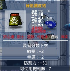 9屬盜賊上衣+7張上衣幸運100%捲 250