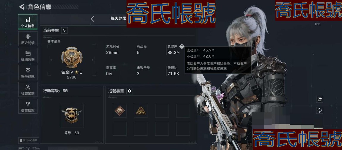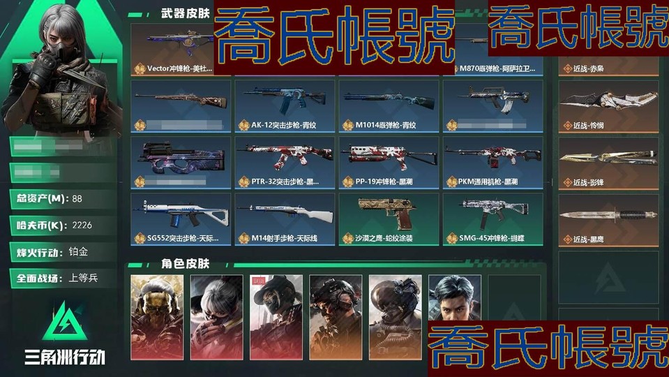 【11等】總資產:88M,哈夫幣:222W,武器皮膚:56,烽火60級:戰場50級:基礎