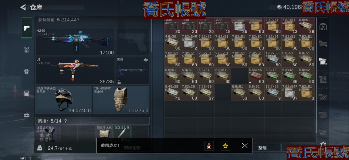 【OBSQRQE224242】總資產:270M,哈夫幣:4000W,武器皮膚:9,烽火60級:【安全箱】S7頂級安全箱;【特勤處等級】倉庫LV.9,靶場LV.6,訓練中心LV.7;【近戰武器】近戰武器-黑海,近戰武器-影鋒,近戰武器-黑鷹;【步槍皮膚】M7戰鬥步槍-稜鏡攻勢S2,AUG突擊步槍-氣象感應,騰龍突擊步槍-氣象感應,K416突擊步槍-命運,QBZ95-1突擊步槍-王牌之劍,SCAR-H戰鬥步槍-電玩高手;【貨幣】三角幣&卷合計:400,(資訊源於賣家釋出,實際資訊以驗號為準)【QQ登入】還有一些槍皮沒有截圖