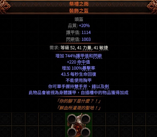 PoE2雙手斧、錘、劍👌傳奇→祭禮之雨.裝飾之盔 ( 全域暴擊率 、 命中 )