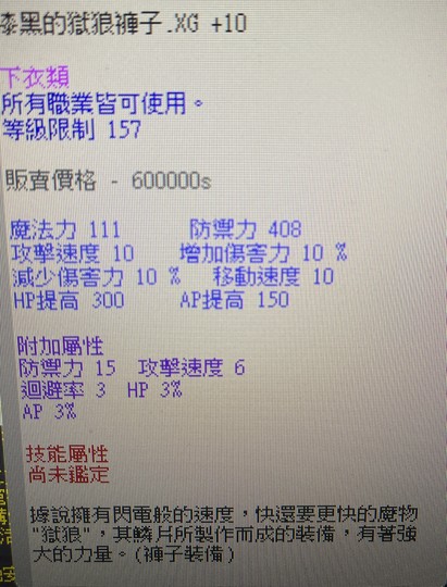 漆黑的獄狼褲子XG+10多正屬內詳,新手回鍋,增傷裝,異界,槍手,刺客,黑龍