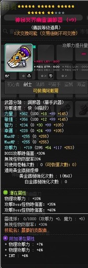 主潛能:75%BOSS10%物攻(次頂主流主潛能)