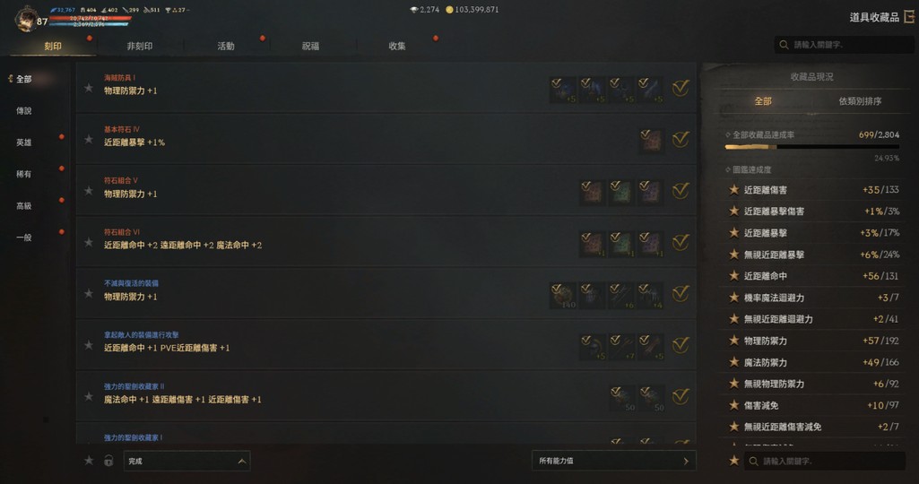 【聖騎士、87等、絲莉安】4金娃3紫技 傷299命511(不含PVE) 94%3紫計 TJ金變粉娃