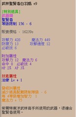 +9武林聖賢者白羽扇(攻12魔6命8必4HP2%AP3%)(治療+1)(DG發條4等增智+75魔)