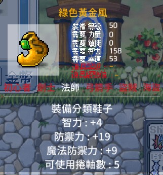 【綠色黃金風】橘字乾淨綠色黃金風 +4智50等法師鞋子五十等法師鞋子裝備