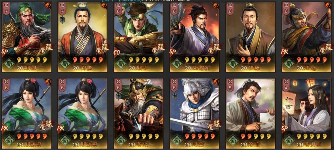 形象:姜維 龐統 諸葛亮 孫尚香 周泰 程普 呂布 張飛 關銀屏 司馬懿 張遼 小喬 關羽 SP袁紹 陸遜 趙雲 張角 夏侯淵