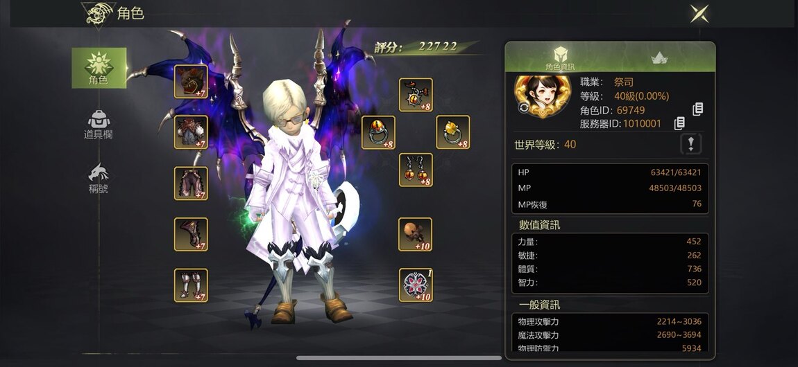 【40等】售【神聖天堂】祭司 2.3萬戰力 光明三件+夜空三件套,有金飾品