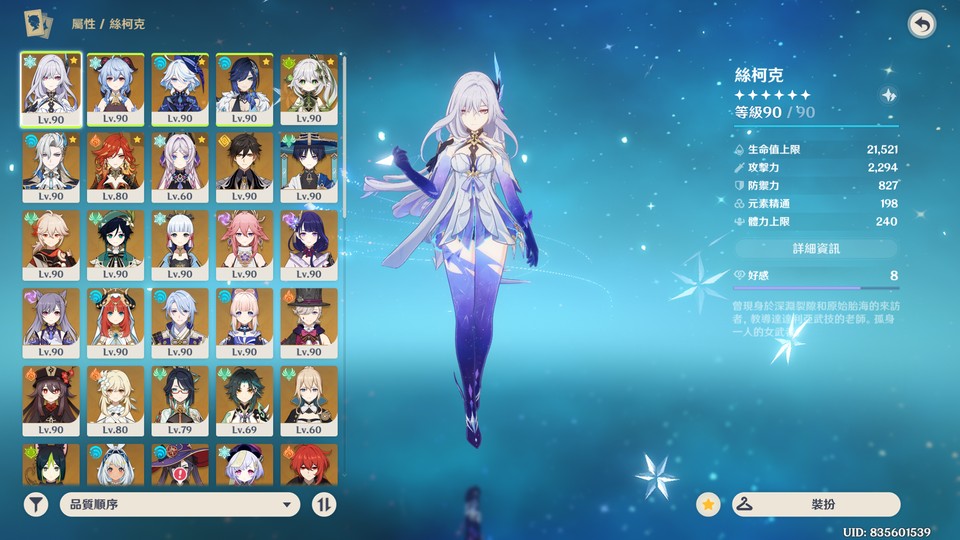 【女、60等、36金角、26金武】絲柯克2命 夜蘭6+5 火神2命 龍王2命 草神2命背包裡有還沒用的小月卡.結晶