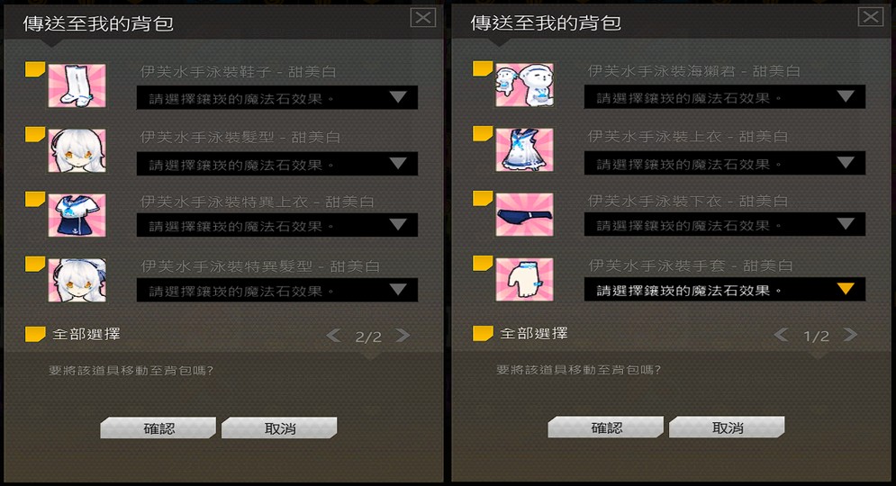 組合包含左7右1(髮型*2 上*2 下手鞋 武器
