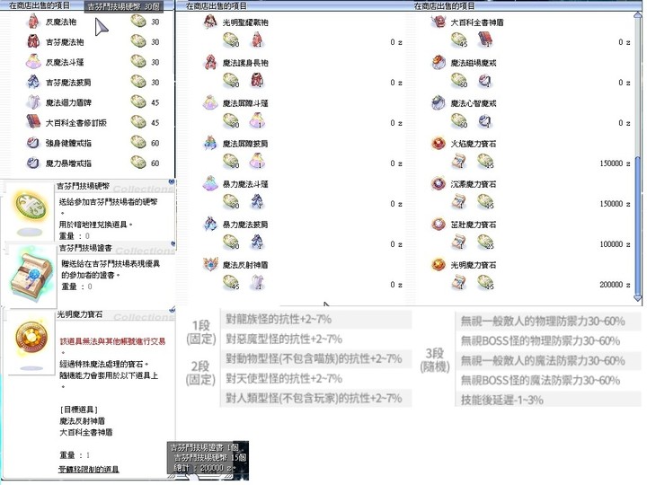 吉芬鬥技場證書50個+吉芬鬥技場硬幣750個/忽防60%.百破.抗人.抗龍14%