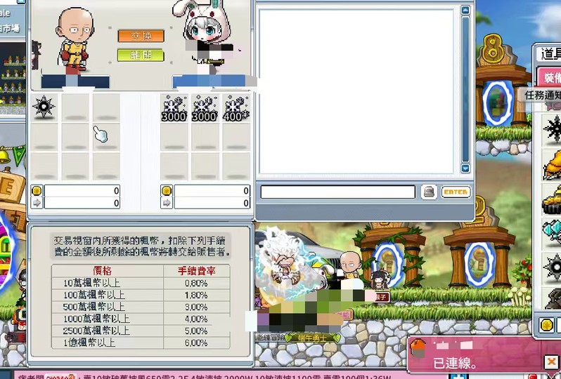 交易過程中,請準備5-9樣 裝備 卷軸混搭,確保雙方交易安全