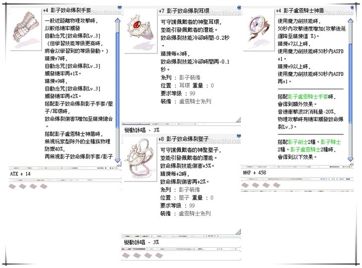 另有+23 影子致命爆裂套(一套不拆.手盾耳墜.ATK.變詠)= 800T