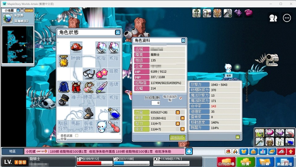 開服玩到現在 裝備齊全 各種場合 鯊魚 魚屋 CD 拉圖斯 野王 喵Z 雪毛 炎魔135 皆可打