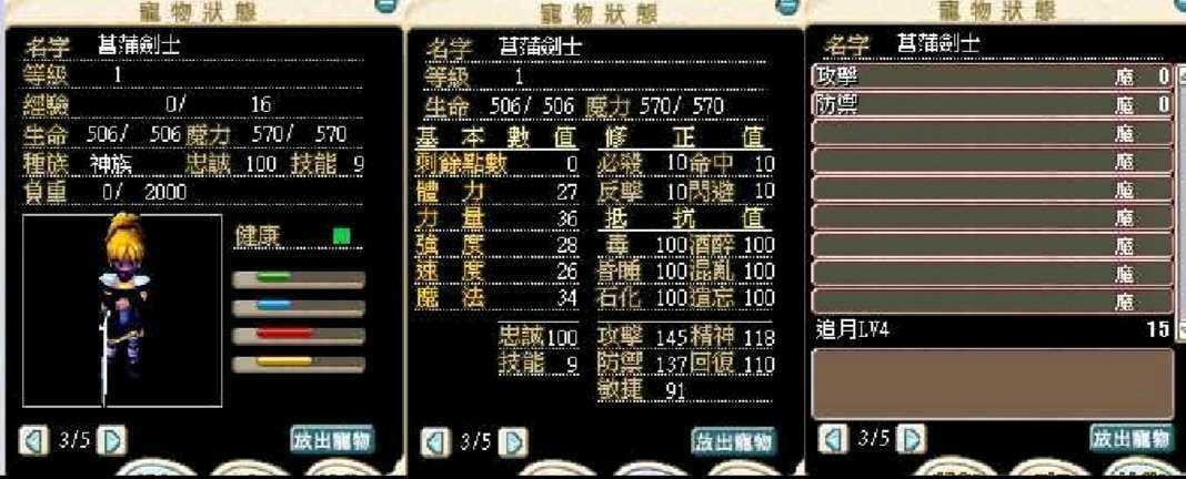 幸運飛馬,菖蒲劍士,碧濤人魚,粉紅人魚(可靠米拉),鬼焰妖犬,大嬸,異獸