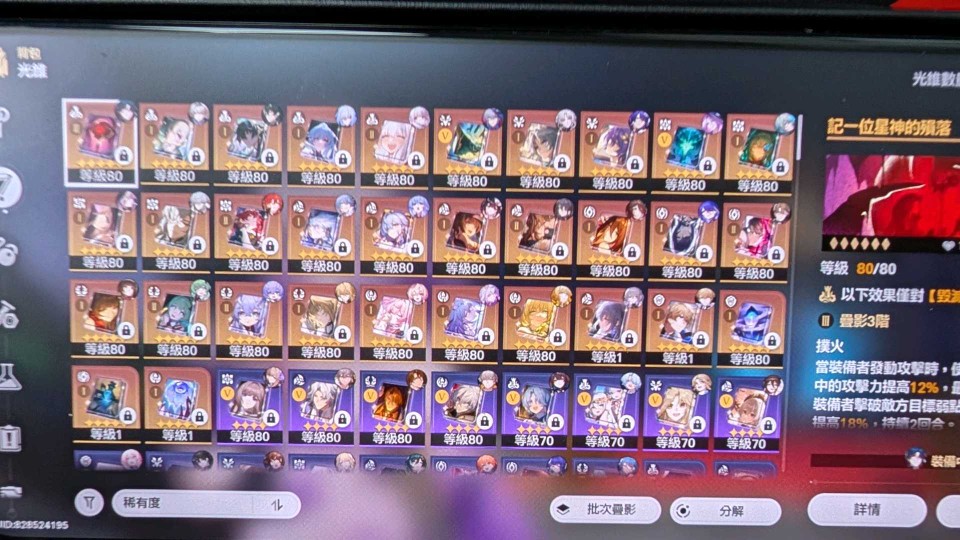 目前五星角色與光椎如圖 四星角色全滿命 我就不貼了 有其他問題可問 殺價太多就不好意思了 可更換信箱 目前還在持續遊玩中,進度都是跟到最新 價格好談