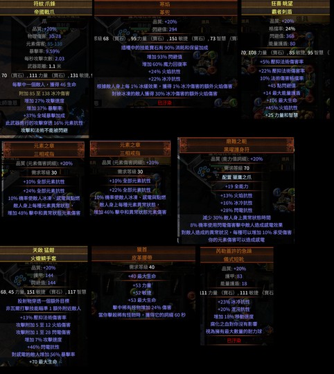 整套含裝備 珠寶 藥劑 天賦 技能 POB