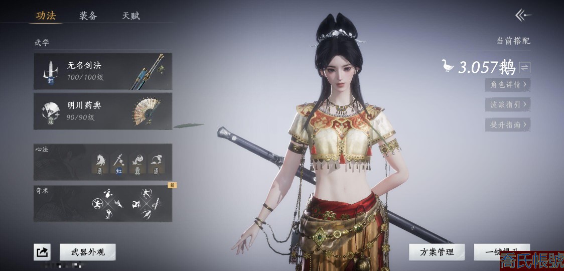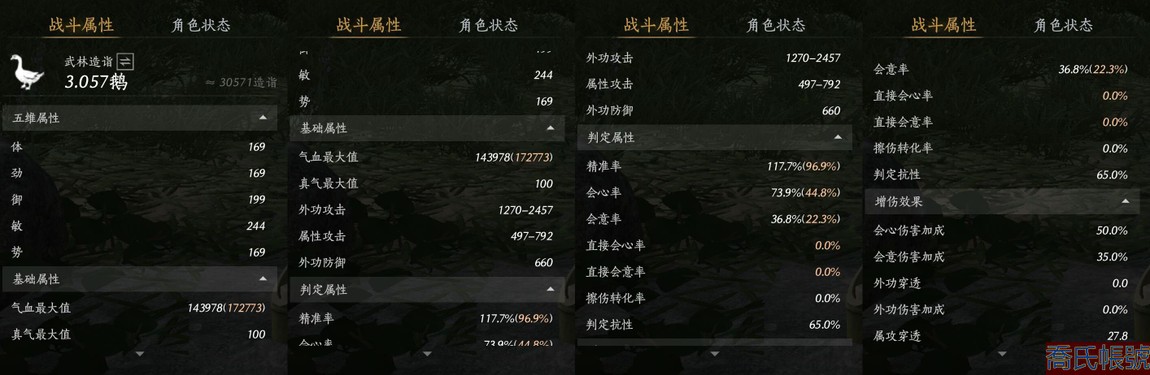 【11等】等級100,風華值6576,武林造詣3.057鵝,清河探索6級,開封探索6級,