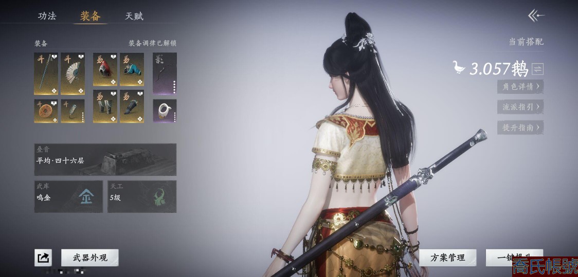 【OBYIDJV814942】等級100,風華值6576,武林造詣3.057鵝,清河探索6級,開封探索6級,河西探索6級,套裝數量5,坐騎數量1,戰令等級20,套裝:烏紗紅漪/晏平生/清河強者/江湖客/遙夜行;武學心法:無名劍法100級/明川藥典90級;武器外觀:霜楓眠;載具:盜驪;必得絕世次數:嫋嫋之音150次內,嫋嫋之音·綁26次內;【道具代幣以實際驗號為準】【賬號】探索收集號