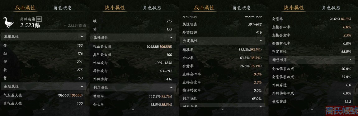 【11等】等級98,風華值5578,武林造詣2.523鵝,未用八音竅1,清河探索5級,開