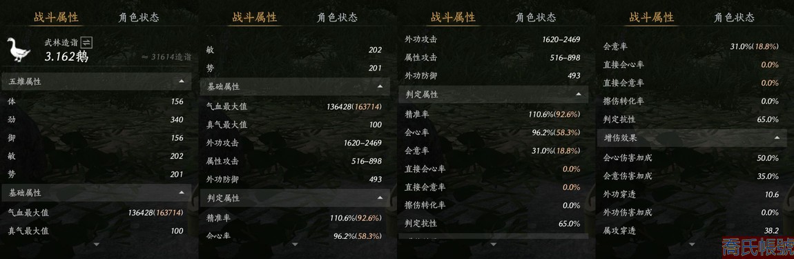 【11等】等級100,風華值6467,武林造詣3.162鵝,清河探索5級,開封探索5級,