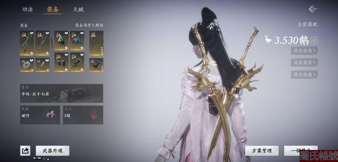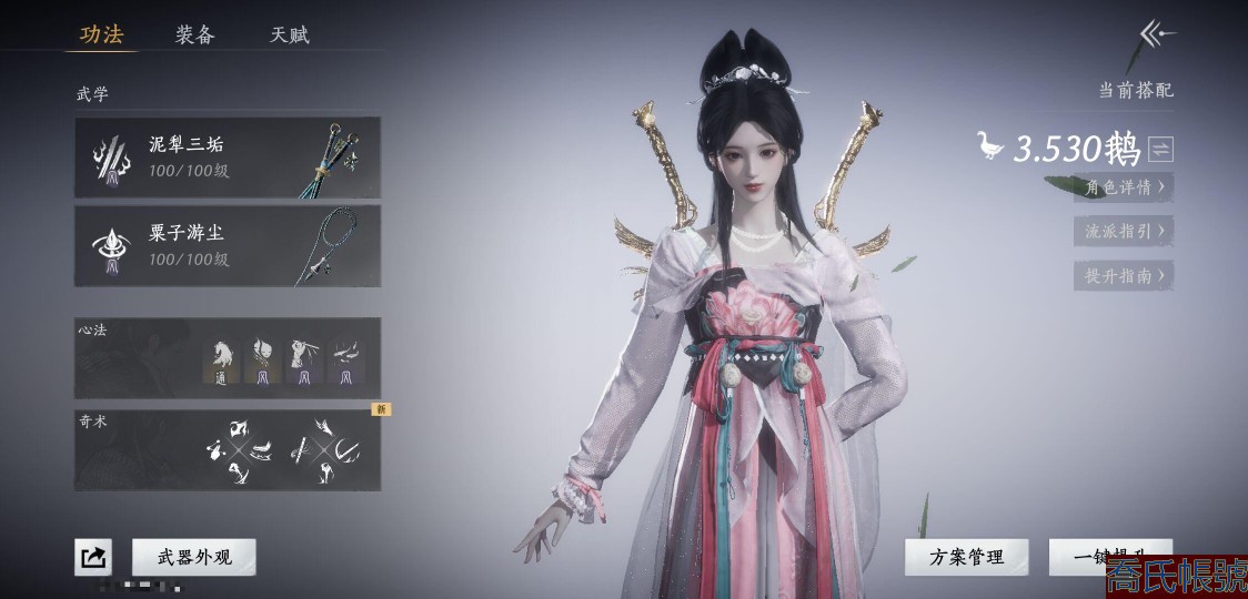 【11等】等級100,風華值15690,武林造詣3.530鵝,已用八音竅(不含染色)3,