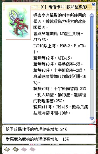 +11 C 戰慄拳刃LT (暗屬24%+惡魔15%) (雙殘忍殺手