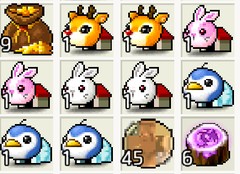 白虎、雪吉拉、麋鹿、小雪人(雪寶)、迪諾龍(鱷魚)、粉紅兔、小白兔、熊貓、齊天大聖、企鵝、奇怪羊駝的蛋(黑色阿志)、黑色小貓、皮卡啾