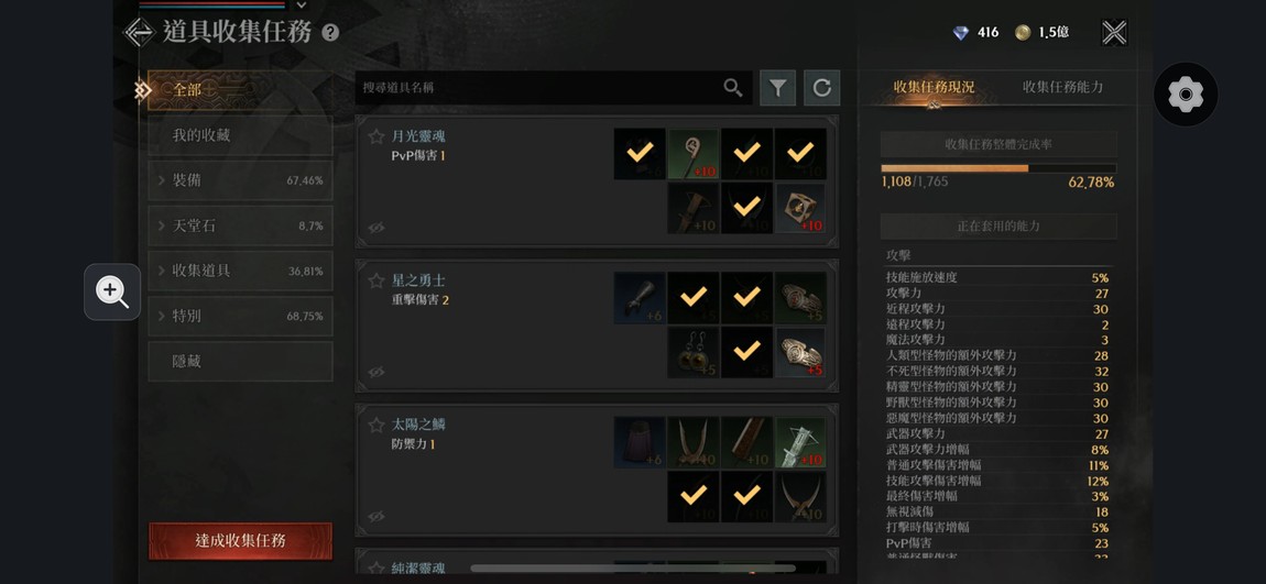 【75等】海達1500+前衛 7金聖衣 2金使魔 3金聖衣1金史魔重複