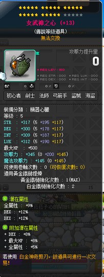 【女武神之心】雙傳25星33%敏女武神之心 附加85敏大雙 白2全命運~