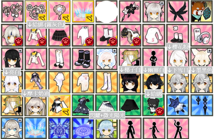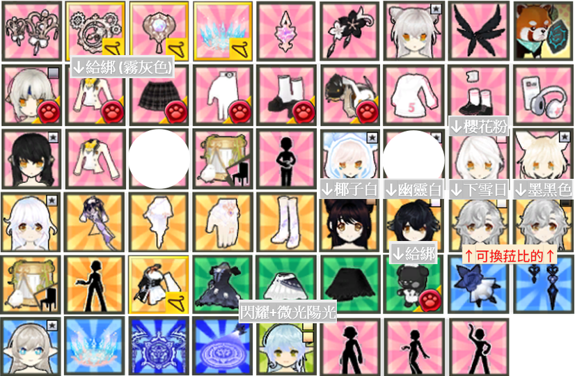 EVE以太右4、LTA永恆誓言下-白、EVE永恆誓言上-黑、EVE聖騎士右3(武+臉中+飾品上)、露冰海精靈左5、露共存節連身、蕾娜以太右4、蕾娜永恆誓言左5-黑、露聖騎士左5、EVE夢幻人形髮型、露童話武器、蕾娜永恆誓言左4-白、坐騎貝貝、蕾娜飛輪地板光、EVE腥紅噩夢右4、露蝶之安魂曲鞋子、海洋太陽眼鏡、歐若拉之夢光芒&稜鏡、憤怒戒指、搖曳貓尾巴-白、露漆黑右3、EVE永恆誓言鞋子-黑、艾拉白漆黑右3、EVE飛輪飾品上、EVE太陽影、EVE童話髮、EVE電磁黑泳裝左4(上下手鞋)、EVE浪漫禮服整套+白特務髮型(普版+特異)+冰海精靈右4+閃耀魔法使自定+腥紅髮型、EVE極光斗篷+熾天使上衣(黑)、EVE聖騎士右2(臉上+飾品下)、雪狐左5帽版+武器、機械將軍髮型、