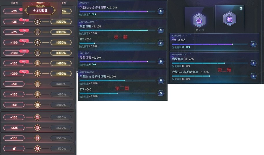 保玉已擴充15等 目前左邊開到13 數值都不錯