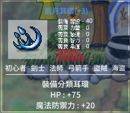 【40等藍月耳環75HP耳環】法師、全職血裝 耳環+75hp