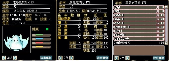 3.凜冬史萊姆。35等,素質如圖 $150T/隻