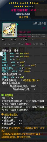 【永恆弓箭手帽】傳罕22星-4cd10%敏永恆弓箭手帽 白3全v捲~