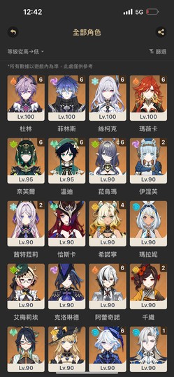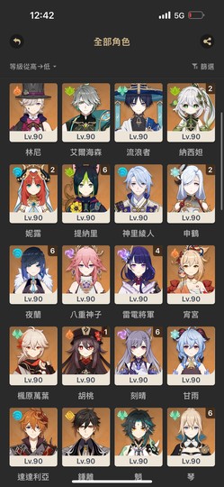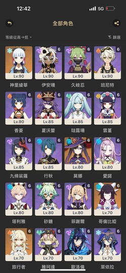 地圖探索除了5.5新圖後其他全滿,主線也都解完了剩一些邀約沒破而已,有練的角色練度都很高,聖遺物也有特別花原石刷所以都還不錯,打深淵或幻境都很輕鬆,售出前會繼續登每日刷聖遺物