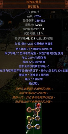 PoE6L異能魔力👌回想→玫瑰的傳承.審判長杖(賦予等級20召喚塑界者記憶