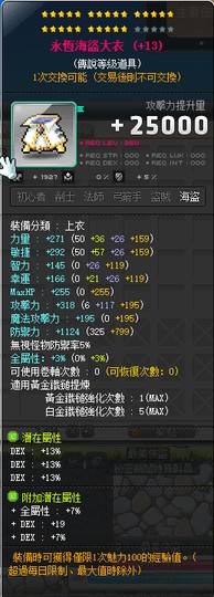 【永恆海盜大衣】雙傳25星39%敏永恆海盜大衣 附加2.5排 白5全b捲~