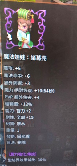 【賣】諸葛亮娃娃 (潛能:傳說破聖) 15500T.